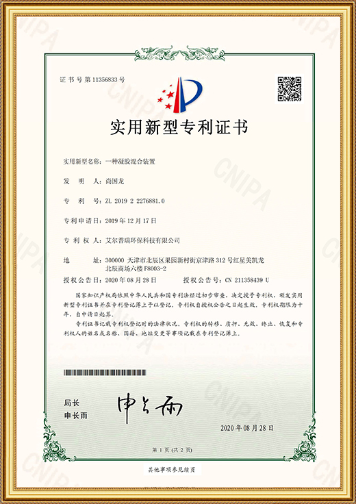 實(shí)用新型專利證書(一種凝膠混合裝置)